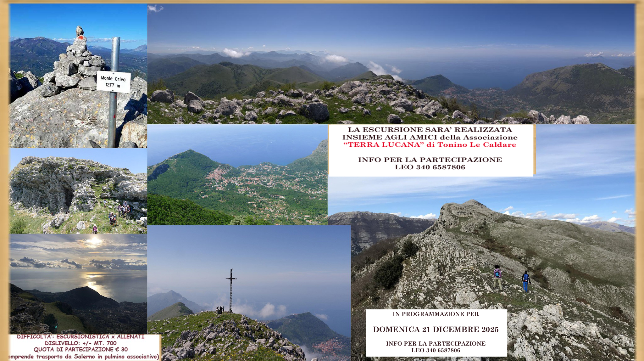 Il percorso parte dall'abitato di Colliano nella valle del Sele, centro tristemente noto per il terremoto dell'80 dal quale rimase fortemente colipito. Malgrado ciò ci sarà l'opportunità salendo per Collianello di visitare il suo interessante centro storico. Di qui in montagna verso la grotta del Brigante Crocco che proveniva dalla vicina Basilicata....