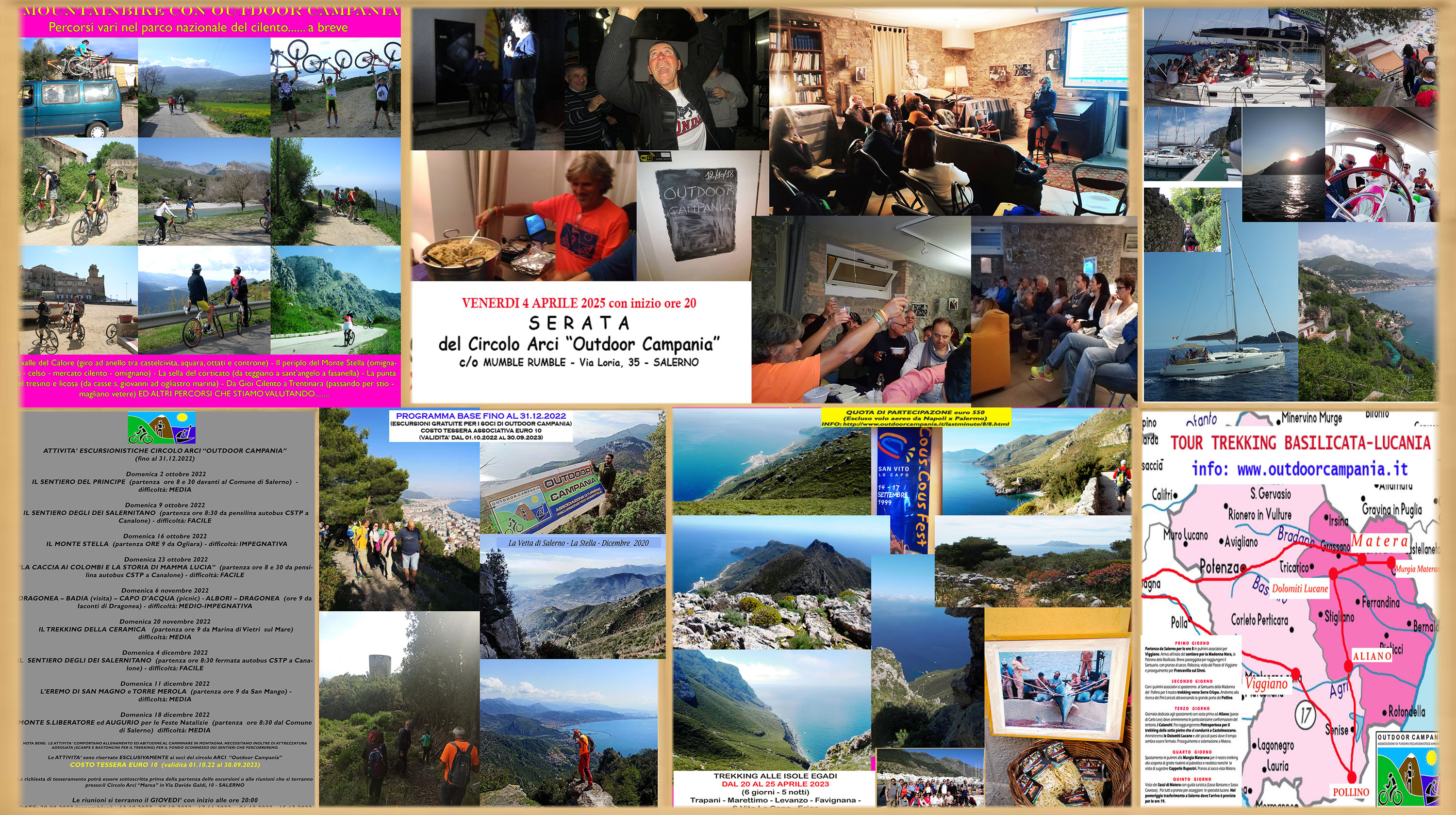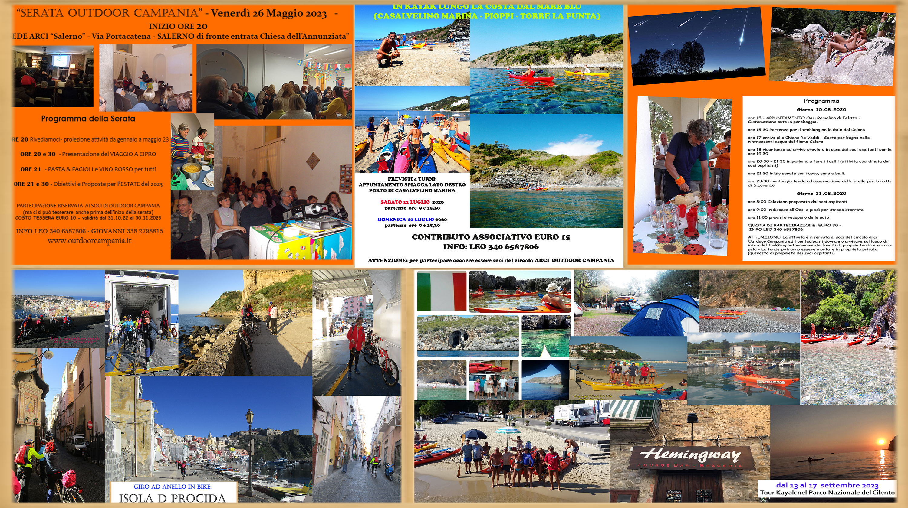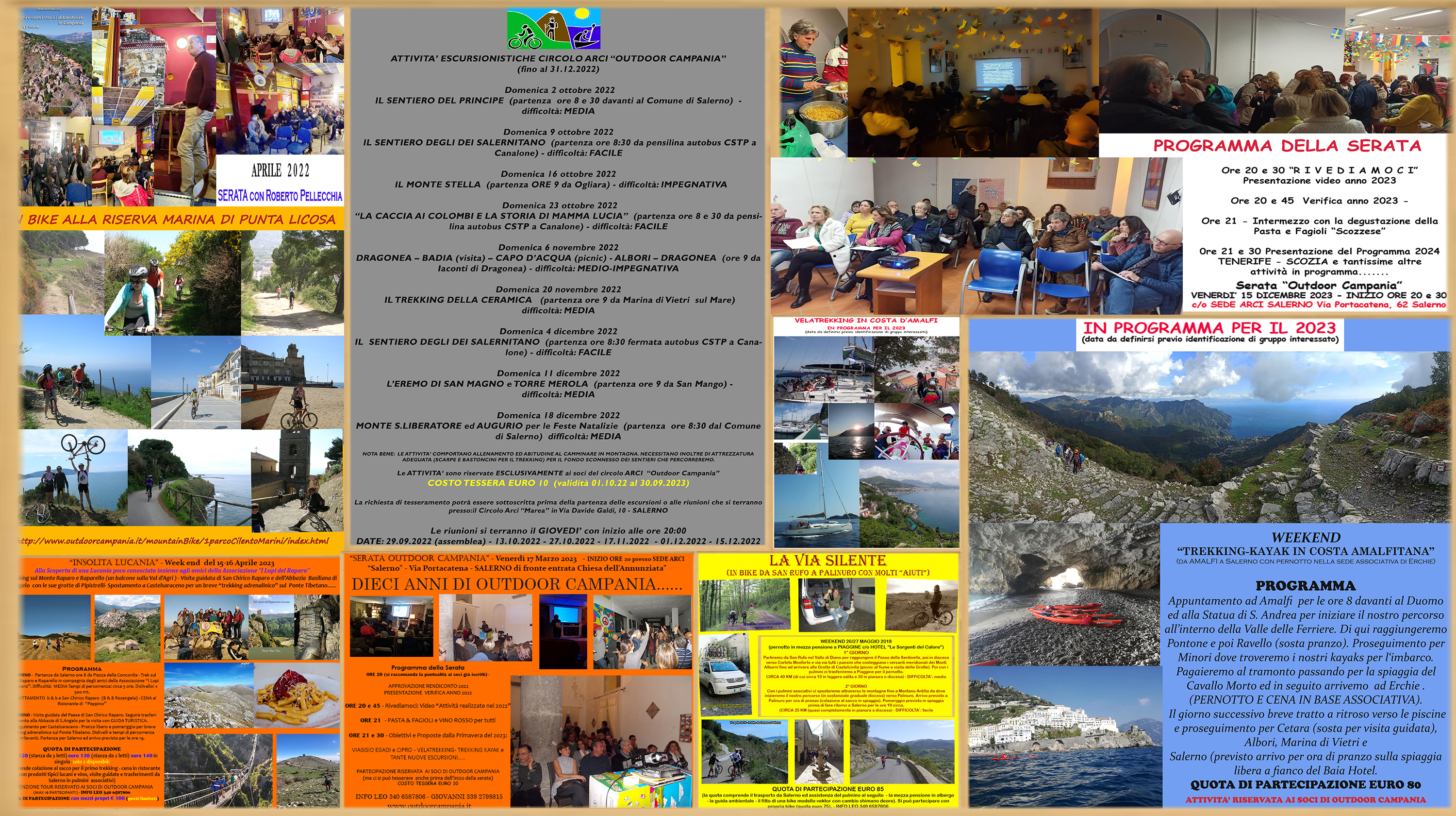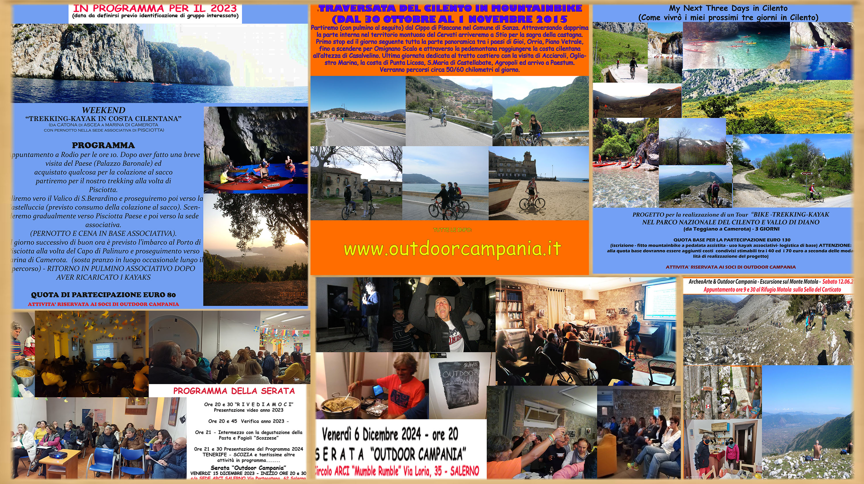 P R O G R A M M A della S E R A T A Ore 19:30 - Registrazione soci (CI SI POTRA' EVENTUALMENTE TESSERARE PER COLORO CHE NON SONO IN POSSESSO DI TESSERA) Ore 20:00 - Serata dedicata alle attività del Circolo nel Parco Regionale del Cilento e Vallo di Diano OSPITE MARIANNA IANNONE guida AIGAE di ArcheoTrekking - DIBATTITO (DOMANDE E CHIARIMENTI) Ore 21:00 - 21:30 - Break con PASTA & FAGIOLI OFFERTA DAL CIRCOLO ARCI OUTDOOR CAMPANIA (si precisa che è possibile acquistare bevande presso il Bar del Circolo). Ore 21:30 - Presentazione del "Viaggio Kayak che realizzeremo in Sardegna" Ore 22:00 - CHIUSURA DELLA SERATA
