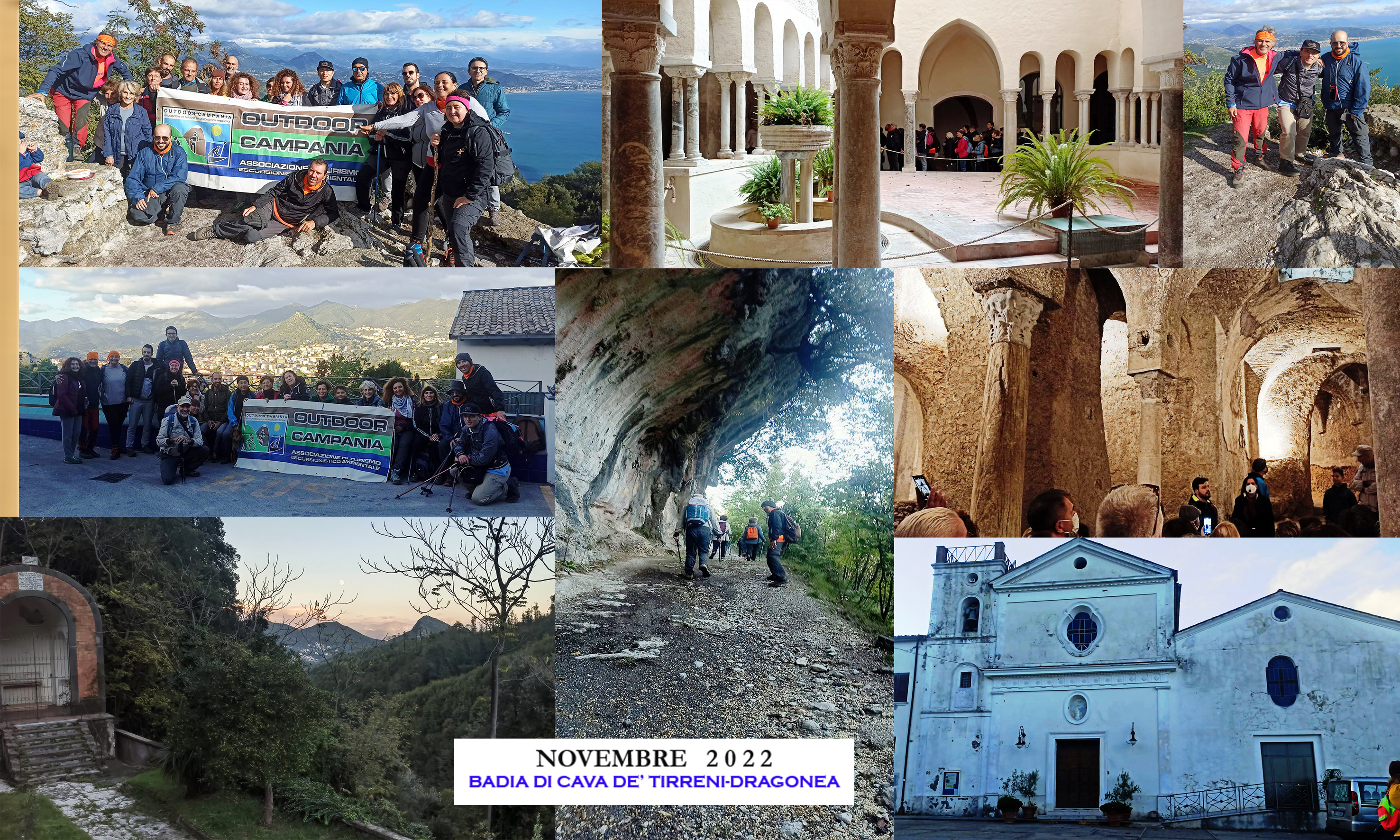 Giro ad anello partendo da Dragonea. Raggiungeremo prima Albori per una piccola visita del Borgo e poi saliremo verso Cappella Vecchia per affacciarci sulla Costa Amalfitana. Ridiscenderemo poi tra i boschi di castagno per raggiungere la località Corpo di Cava. Sosta pranzo e nel pomeriggio visita della millennaria Badia ricca d storia e tradizioni. Dopo la visita in circa '50 raggiungeremo Dragonea.